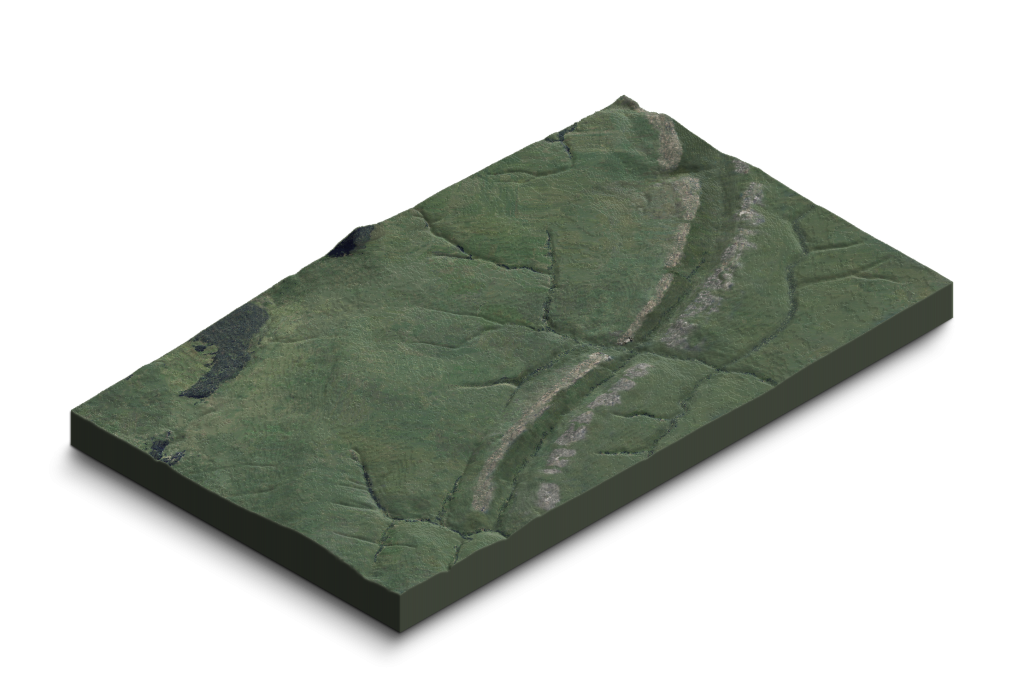 Dos largas crestas de caliza cruzan el terreno formando barreras que los ríos solamente pueden atravesar por las fallas que las fracturan.
