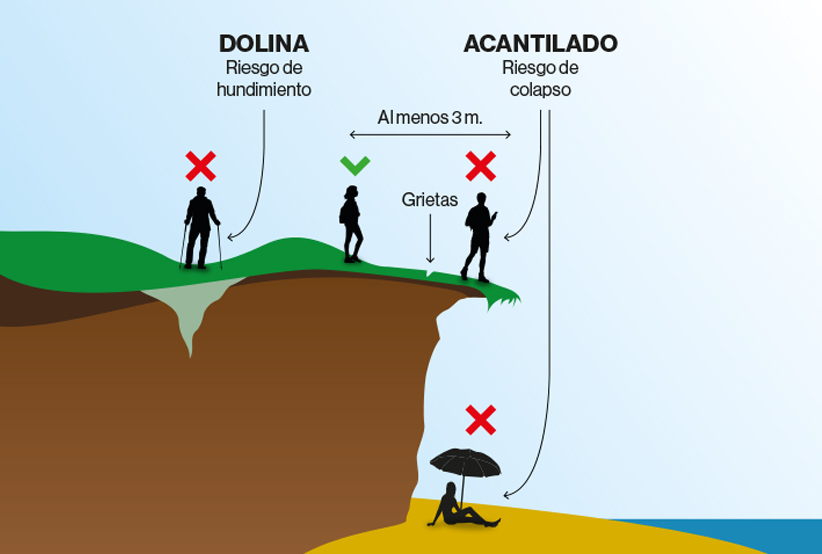 La visita al Geoparque Costa Quebrada debe realizarse siempre atendiendo a las medidas de seguridad y precaución elementales, mostrando especial cuidado en las zonas acantiladas.